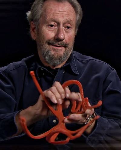 Jeweler Richard Miller describes the structural components of the costume. The "metal" was metallic paint on rubber.